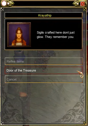 Once you have obtained all items needed, head over to Rian Village. Find NPC Krayathip [81,95] and select Door of Treasure.