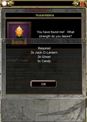 Bring Lama Shuham, in Yerden x5 Ghost to obtain x1 Jack-o-lantern. [Yerden 215,202]