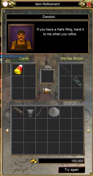 Once you have obtained all 4 items from Nusamlatana Lady, return to Danduki and refine Jack-O-Lantern or Candy into your desired reward. [Rian Village 64,88]